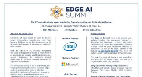 Edge AI Summit 2019 Draft Agenda