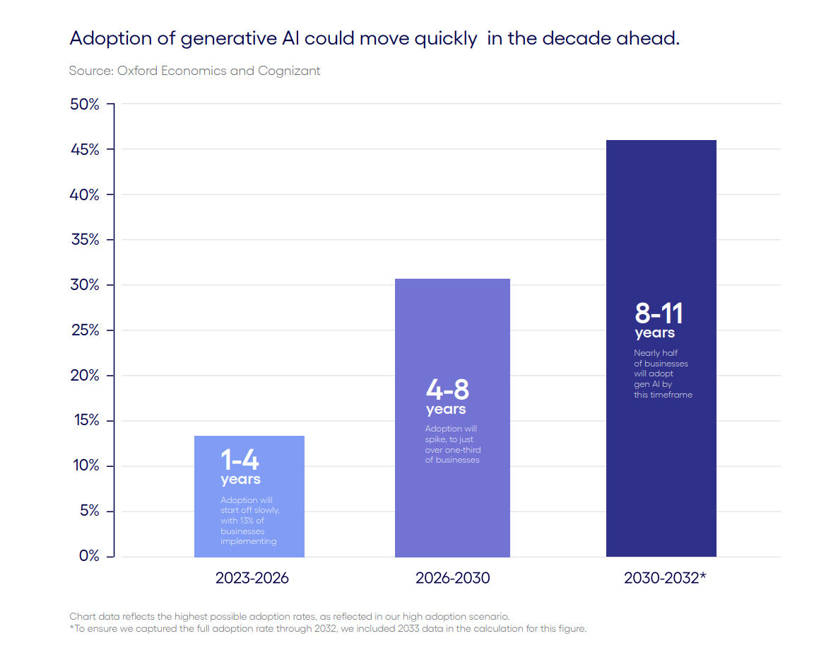 A recent survey by Cognizant and Oxford Economics reveals that while many businesses are eager to implement generative AI, they struggle with scaling it.